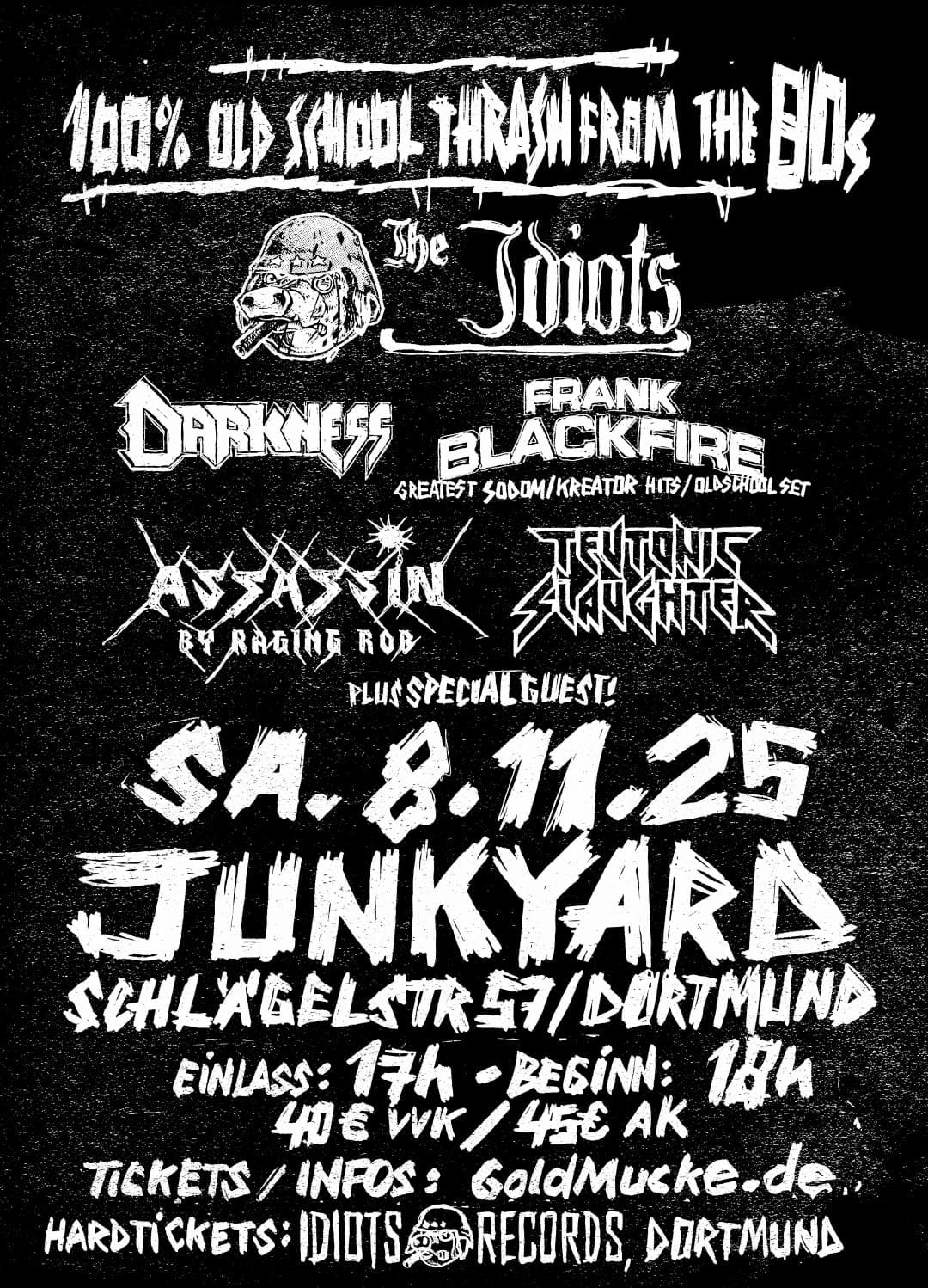 Die nächste Thrash Granate ist bald zu erleben. Im Yunkyard in Dortmund ist 100% Old School Thrash-Metal live in Concert angesagt. Am 08.11.25 gibt es eine Top Auswahl an Bands:…